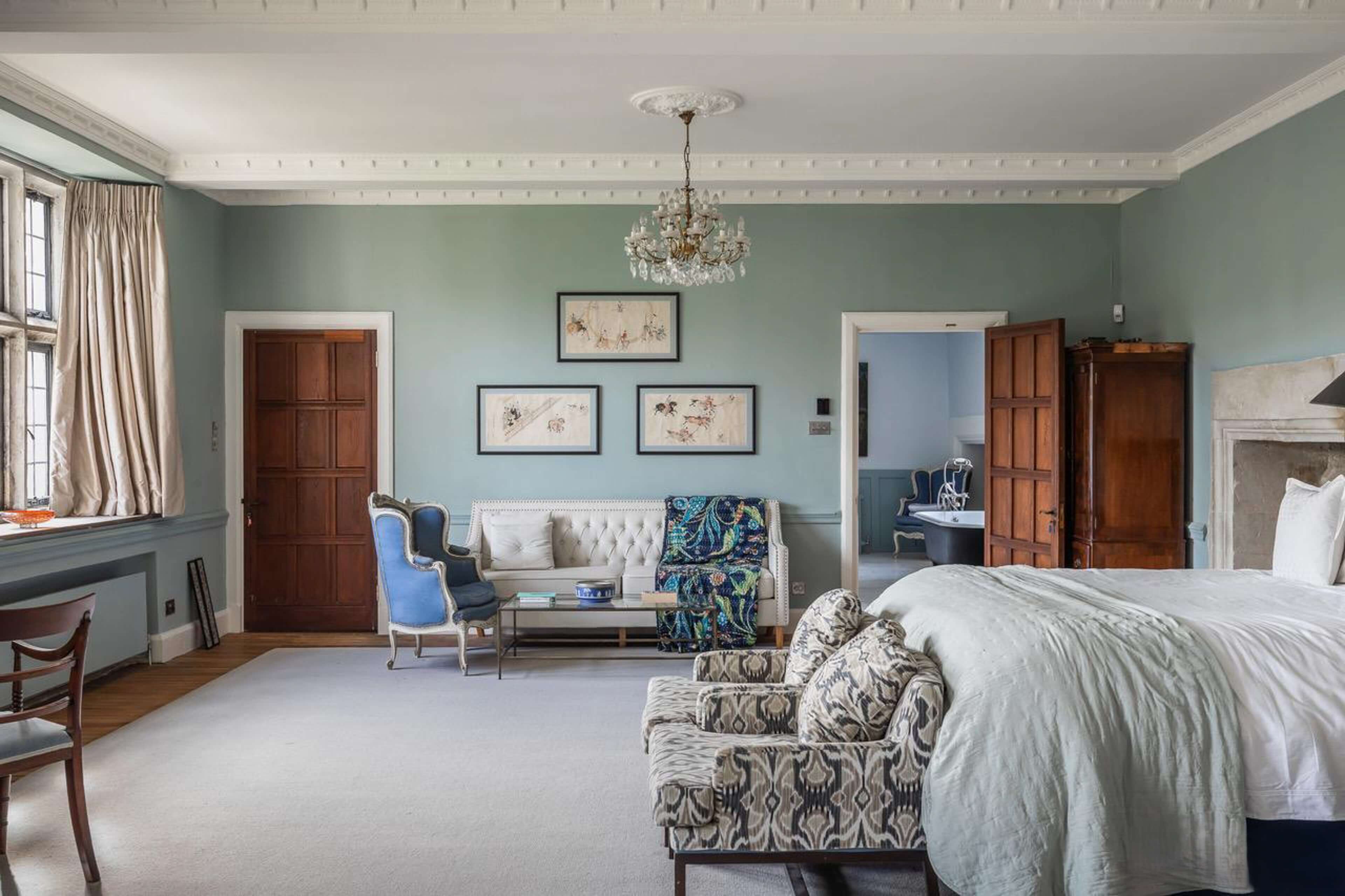 Upstairs, the manor's bedrooms are spacious and characterful, each offering a restful sanctuary with luxurious linens and classic décor. Some rooms feature original fireplaces and views over the manicured gardens or rolling countryside, making every stay feel special.